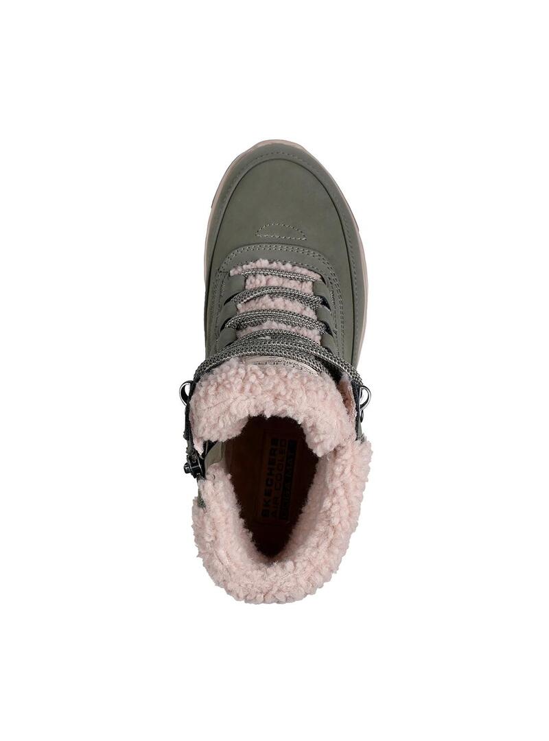 Bota Skechers Waterproof On The Go para mujer, de horma media, está confeccionada en su parte superior en sintético y nobuck. Diseñada en caña alta con forro de borrego sintético, presenta cierre de cordones y cremallera en un lateral, plantilla confort Skechers Air-Cooled Goga Mat ™, amortiguación Ultra Go® y suela de goma con tracción.