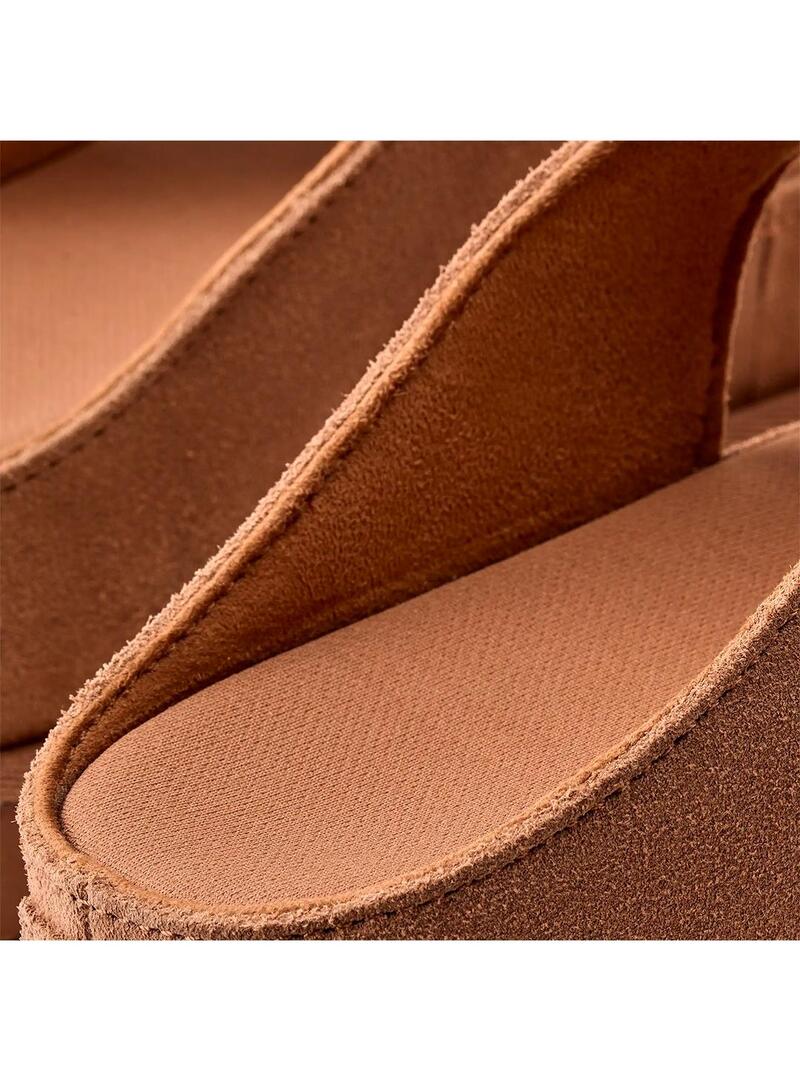 Sandalia UGG Goldenstar Hi Cutout para mujer, de horma clásica, está confeccionada en su empeine en ante. Diseñada con plantilla anatómica de VA con tratamiento antiolores, entresuela y suela de goma EVA de caña de azúcar.